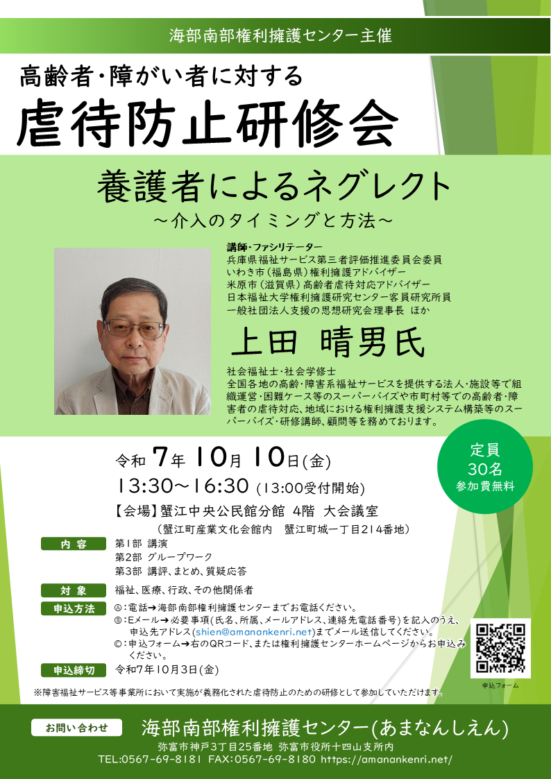 海部南部権利擁護センター 高齢者・障がい者に対する虐待防止研修会
